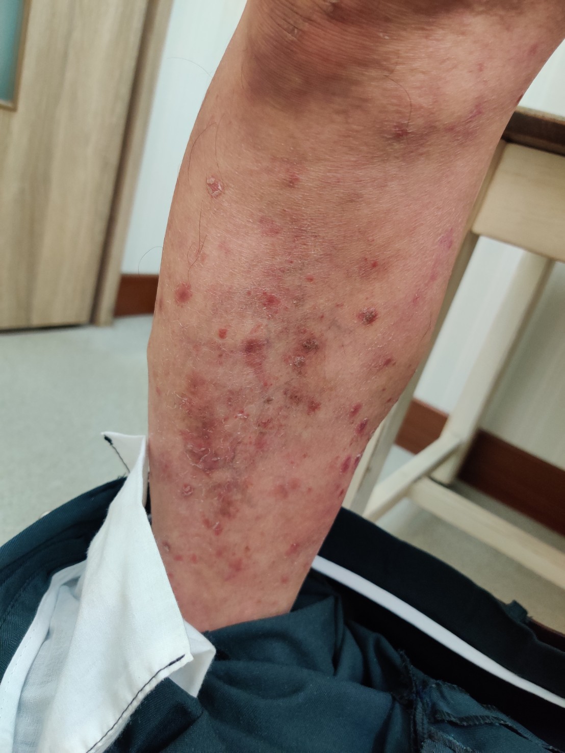 目前單就乾癬治療可以使用外用藥物(ex:類固醇、A酸、焦油及維生素D等)、光線療法(nbUVB及PUVA)及全身性治療(MTX、環孢黴素、口服A酸及生物製劑等),治療需要依據病患情況而有個別不同。 聽到這邊,患者已經大致了解狀況,也願意接受治療以及保養及照顧方面的衛教,並且建議病患可以再到醫院進行ㄧ些內科方面的檢查,了解是否有其他共病的問題。