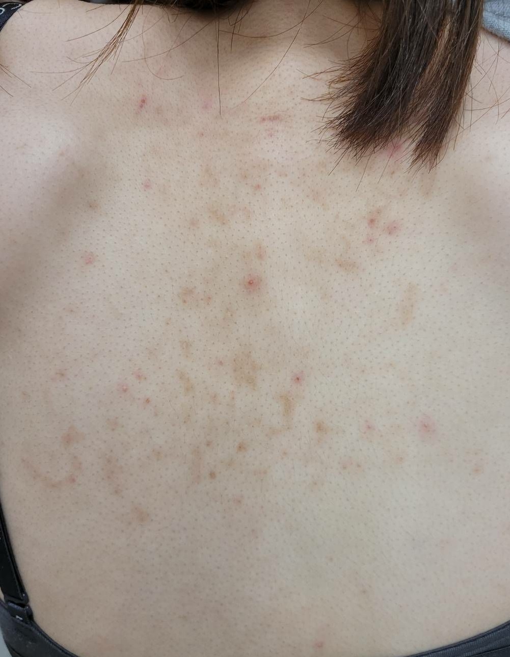 一位年輕小姐一進診間就不停地抓背,癢得不得了,一邊抓一邊說這個疹子已經兩三個星期了,看了四五位醫師,有的說是蕁麻疹,有的說是濕疹,每次用藥都似乎稍微好一點點或是完全沒差異,反正始終就是沒好過,某天洗澡時照鏡子,才發現自己的背上又黑又醜,實在是心靈跟身體都精疲力竭,不知道是不是跟最近在減重有關係。醫師聽完故事並看了疹子的樣子,順便問了患者是不是在進行生酮飲食療法,患者驚訝的點點頭,此時醫師立馬給了[色素型癢疹]的診斷。